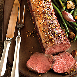 1. Preheat oven to 325°F. Combine Seasoning ingredients; press evenly onto all surfaces of beef roast.