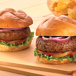 2. Form into four 3/4-in.-thick patties. Grill over coals covered with gray ash 4-5 min. per side. 3. Serve on buns with lettuce, tomato slices, and condiments as desired. * Recipe and image provided by the American Lamb Board Nutritional information:
