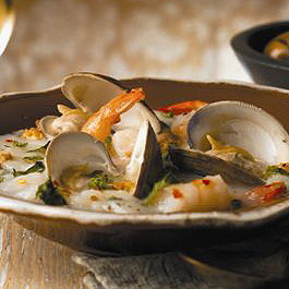 2. Wash shellfish and peel off casing and crumble sausage into size of almonds. Heat large pot with oil and lightly brown sausage. Add clams and white wine and steam 3 min., then add shrimp and soup base. Bring to simmer, add kale and simmer 1 min. or until shrimp and kale are cooked. *Recipe courtesy of Rich Vellante, Corporate Executive Chef, Legal Seafoods, Boston, MA |