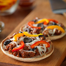 2. Place sandwich thins, cut sides up, on rack of broiler pan. Spoon equal amounts of beef mixture on each bread half. Evenly sprinkle with cheese and toppings, as desired. 3. Place pizzas on rack of broiler pan so surface of cheese is 3 to 4-in. from heat. Broil 4-5 min. or until cheese is melted and bubbly. Italian-Style Beef Sausage: 1. Combine ground beef and seasonings in a large bowl, mixing lightly but thoroughly. 2. Heat large nonstick skillet over medium heat until hot. Add beef mixture; cook 8-10 min, breaking into 1/2-in. crumbles and stirring occasionally. Makes 2-1/2 c. (Cooking times are for fresh or thoroughly thawed Ground Beef. Ground Beef should be cooked to an internal temperature of 160ºF. Color is not a reliable indicator of ground beef doneness.) * Nutrition information per serving using 80% lean ground beef. * Recipe Courtesy of The Beef Checkoff Nutritional information:
