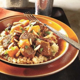 2. Serve over couscous. Garnish with almonds and parsley, if desired. * Recipe Courtesy of The Beef Checkoff Nutritional information: