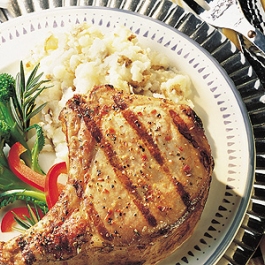 2. Remove chops from bag, discarding marinade, and grill over a medium-hot fire, turning once, until just done, about 8-9 min. total cooking time, until internal temperature on a thermometer reads 145°F, followed by a 3-min. rest time. * Nutritional information does not include suggested side dishes. * Recipe and photo courtesy of National Pork Board. For more recipes visit: www.PorkBeInspired.com Wine pairings:
