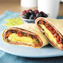 2 . Sazone la carne con pimienta. Si es necesario limpie la sartén con toallas de papel. Engrase con espray de cocinar; caliente sobre fuego medio alto. Agregue la mitad de la carne; los bisteces de 1/8 de pulgada de grosos cuézalos de 1 a 2 minutos (los de 1/4 de pulgada, de 3 a 4 minutos) o hasta que la superficie exterior ya no esté rosada. No cueza de más. Saque de la sartén. Repita con el resto de la carne. Sazone con sal al gusto. 3 . Ponga sobre cada tortilla la mitad de la carne dejando un borde libre de 1-1/2 pulgadas en los lados derecho e izquierdo; agregue dos cucharadas de salsa y la mitad de los huevos. Enrolle las tortillas y sirva con aderezos al gusto. * Esta receta es una excelente fuente de proteína, niacina, vitamina B6, vitamina B12, hierro, selenio y cinc; y una buena fuente de fibra. Recipe courtesy of www.LaCarneDeRes.com Nutritional information: