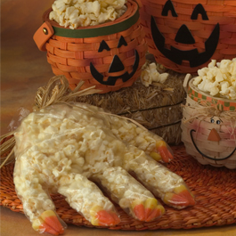 2. Fill the remainder of the glove with popcorn. 3. Tie it off with ribbon or yarn. |