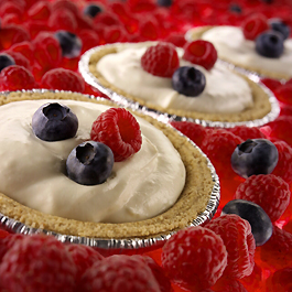 2. Add brown sugar, sour cream, lemon juice, and vanilla; mix well. 3. Divide cream cheese filling among tart shells, spreading evenly, then top with berries. 4. Refrigerate at least 2 hrs. prior to serving for ease in cutting. |