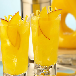 2. Strain into an ice-filled Collins glass and spritz with chilled soda water. Garnish with a fan of mango slices and a spiral of lemon. Serving Tips: * Fresh Mango Puree: One medium-sized mango = 1 cup diced = 1/2 c. puree. ** Fresh Lemon Juice: 1 medium-sized lemon = approx 2 oz. juice *** Simple Syrup: Mix a 1:1 ratio of water to sugar; bring water to a boil, add sugar to dissolve, and cool. All photos © 2008 National Mango Board and used by permission of the National Mango Board. All rights reserved. |