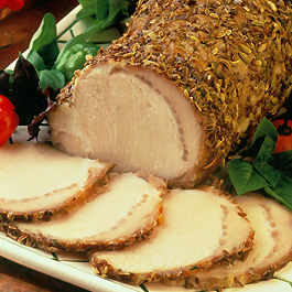 2. Roast in a shallow pan for 40 min.-1-1/2 hr. ( 20 min. per pound), until internal temperature reads 145°F. Let roast rest 10 min. before slicing to serve. * Recipe and photo courtesy of National Pork Board. For more recipes visit: www.PorkBeInspired.com Nutritional information: